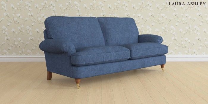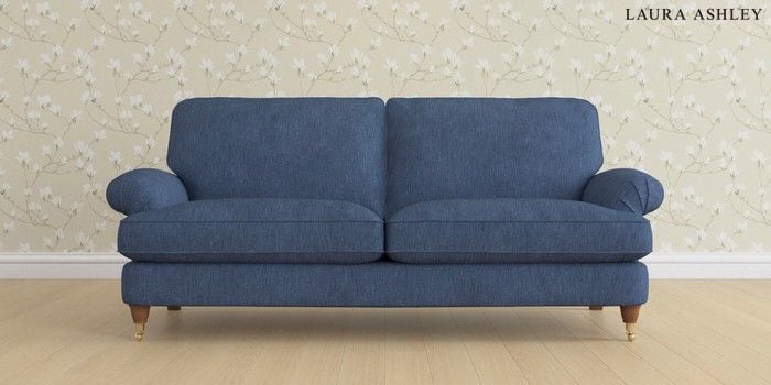 6.12.1 Buy Beaumaris by Laura Ashley 3 Seater Sofa Bainton Midnight Navy Low Brass Castor - Teak from the Next UK online shop Click here to use our accessible website