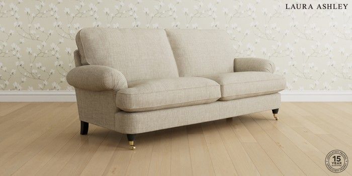 6.12.1 Buy Beaumaris by Laura Ashley 3 Seater Sofa Bainton Natural Low Brass Castor - Black from the Next UK online shop Click here to use our accessible website