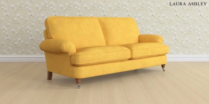 6.12.1 Buy Beaumaris by Laura Ashley 3 Seater Sofa Bainton Ochre Yellow Low Chrome Castor - Teak from the Next UK online shop Click here to use our accessible website