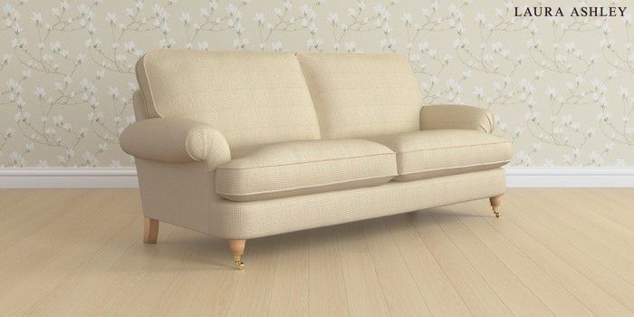 6.12.1 Buy Beaumaris by Laura Ashley 3 Seater Sofa Birchgrove Check Oatmeal Natural Low Brass Castor - Light Oak from the Next UK online shop Click here to use our accessible website