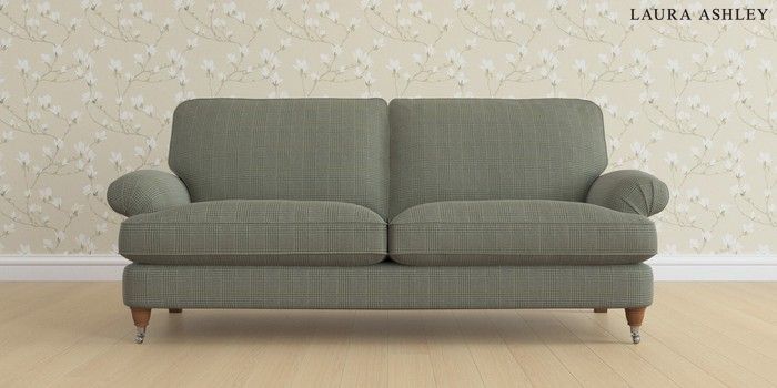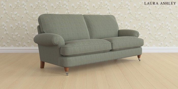 6.12.13 Buy Beaumaris by Laura Ashley 3 Seater Sofa Birchgrove Check Olive Green Low Chrome Castor - Teak from the Next UK online shop Click here to use our accessible website