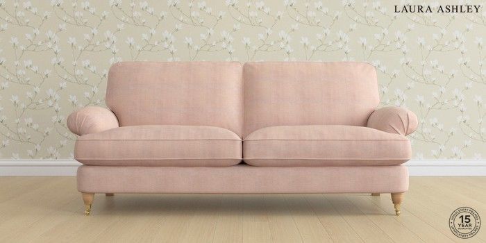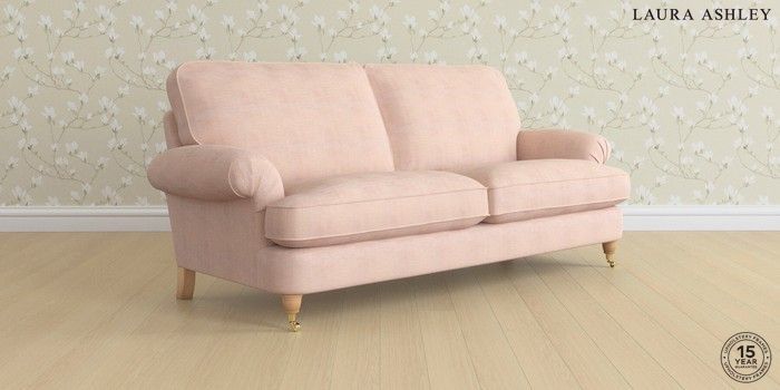 6.12.1 Buy Beaumaris by Laura Ashley 3 Seater Sofa Edwin Chenille Blush Pink Low Brass Castor - Light Oak from the Next UK online shop Click here to use our accessible website