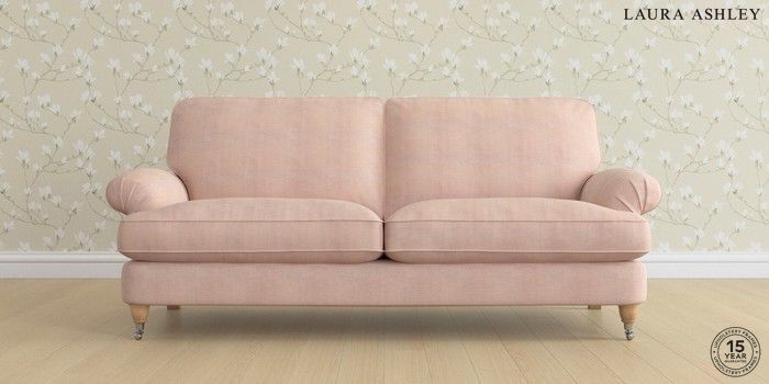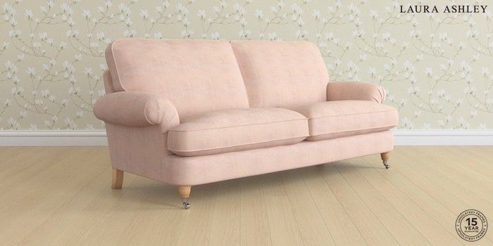 6.12.1 Buy Beaumaris by Laura Ashley 3 Seater Sofa Edwin Chenille Blush Pink Low Chrome Castor - Light Oak from the Next UK online shop Click here to use our accessible website