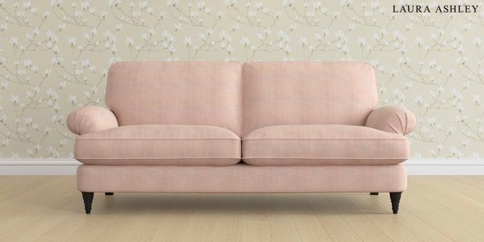 6.12.1 Buy Beaumaris by Laura Ashley 3 Seater Sofa Edwin Chenille Blush Pink Low Turned - Black from the Next UK online shop Click here to use our accessible website
