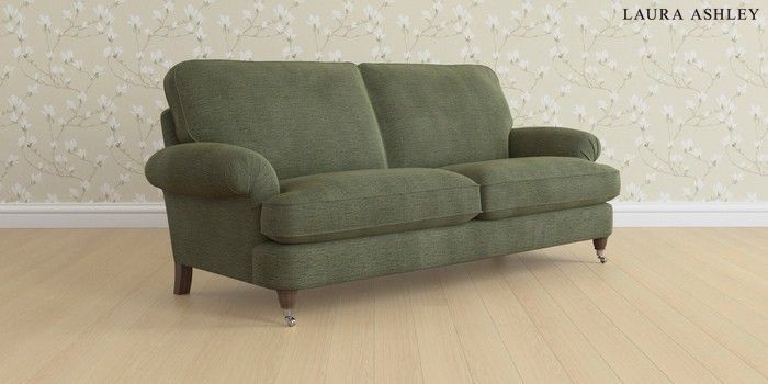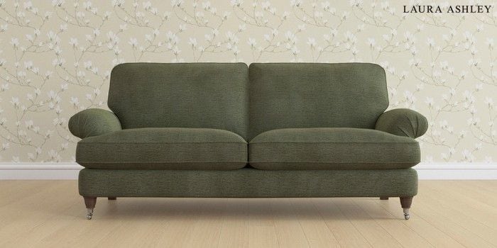 6.12.13 Buy Beaumaris by Laura Ashley 3 Seater Sofa Edwin Chenille Hedgerow Green Low Chrome Castor - Chestnut from the Next UK online shop Click here to use our accessible website