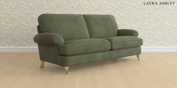 6.12.13 Buy Beaumaris by Laura Ashley 3 Seater Sofa Edwin Chenille Hedgerow Green Low Chrome Castor - Light Oak from the Next UK online shop Click here to use our accessible website