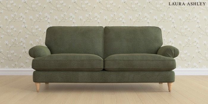 6.12.13 Buy Beaumaris by Laura Ashley 3 Seater Sofa Edwin Chenille Hedgerow Green Low Turned - Light Oak from the Next UK online shop Click here to use our accessible website
