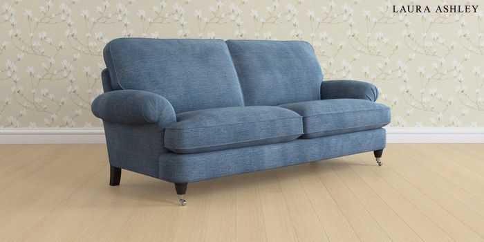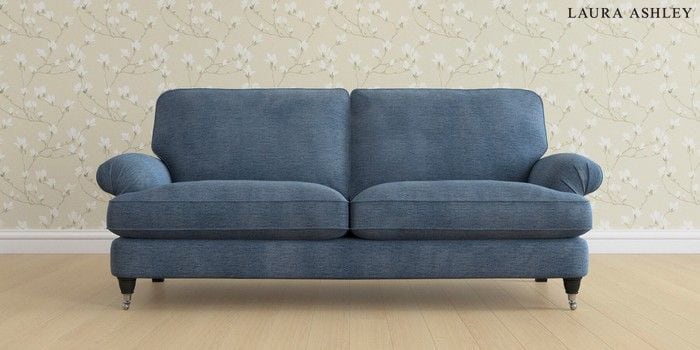 6.12.1 Buy Beaumaris by Laura Ashley 3 Seater Sofa Edwin Chenille Seaspray Blue Low Chrome Castor - Black from the Next UK online shop Click here to use our accessible website
