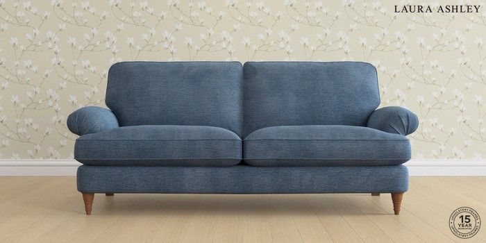6.12.1 Buy Beaumaris by Laura Ashley 3 Seater Sofa Edwin Chenille Seaspray Blue Low Turned - Teak from the Next UK online shop Click here to use our accessible website