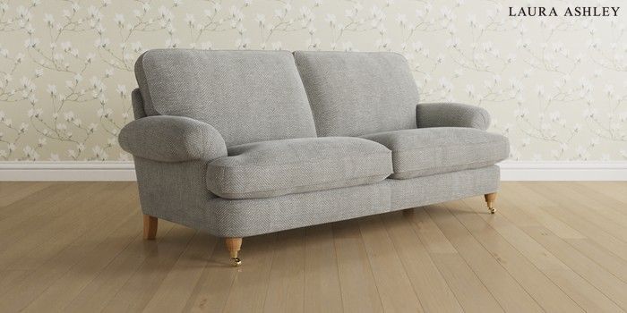 6.12.1 Buy Beaumaris by Laura Ashley 3 Seater Sofa Edwin Chenille Silver Grey Low Brass Castor - Light Oak from the Next UK online shop Click here to use our accessible website