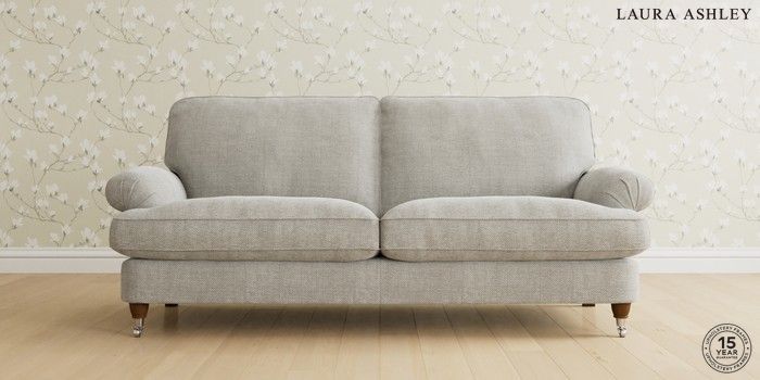 6.12.1 Buy Beaumaris by Laura Ashley 3 Seater Sofa Edwin Chenille Silver Grey Low Chrome Castor - Teak from the Next UK online shop Click here to use our accessible website