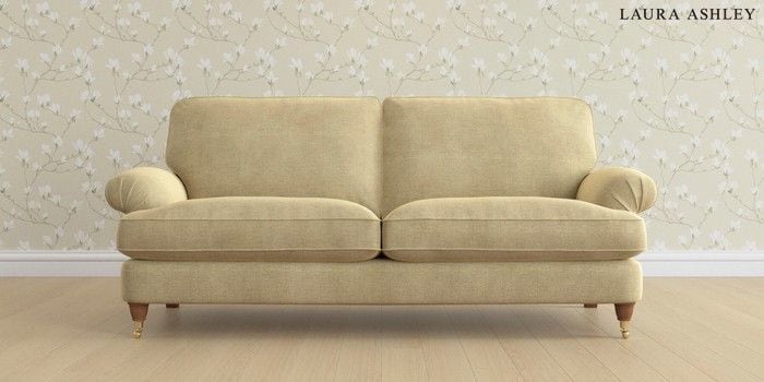 6.12.1 Buy Beaumaris by Laura Ashley 3 Seater Sofa Edwin Chenille Truffle Natural Low Brass Castor - Teak from the Next UK online shop Click here to use our accessible website