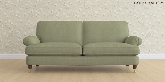 6.12.1 Buy Beaumaris by Laura Ashley 3 Seater Sofa Edwin Herringbone Hedgerow Green Low Brass Castor - Chestnut from the Next UK online shop Click here to use our accessible website