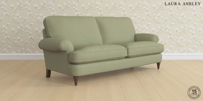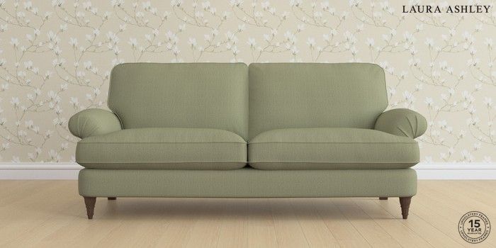 6.12.1 Buy Beaumaris by Laura Ashley 3 Seater Sofa Edwin Herringbone Hedgerow Green Low Turned - Chestnut from the Next UK online shop Click here to use our accessible website