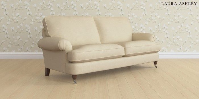 6.12.1 Buy Beaumaris by Laura Ashley 3 Seater Sofa Edwin Herringbone Natural Low Chrome Castor - Chestnut from the Next UK online shop Click here to use our accessible website