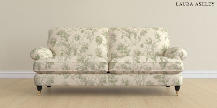 6.12.1 Buy Beaumaris by Laura Ashley 3 Seater Sofa Gosford Weave Sage Green Low Brass Castor - Black from the Next UK online shop Click here to use our accessible website