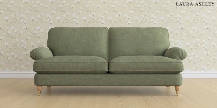 6.12.1 Buy Beaumaris by Laura Ashley 3 Seater Sofa Harley Moss Green Low Brass Castor - Light Oak from the Next UK online shop Click here to use our accessible website