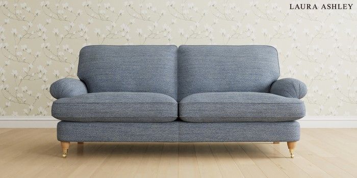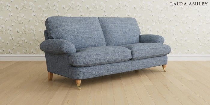 6.12.1 Buy Beaumaris by Laura Ashley 3 Seater Sofa Harley Seaspray Blue Low Brass Castor - Light Oak from the Next UK online shop Click here to use our accessible website