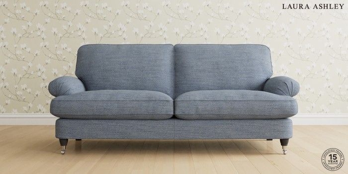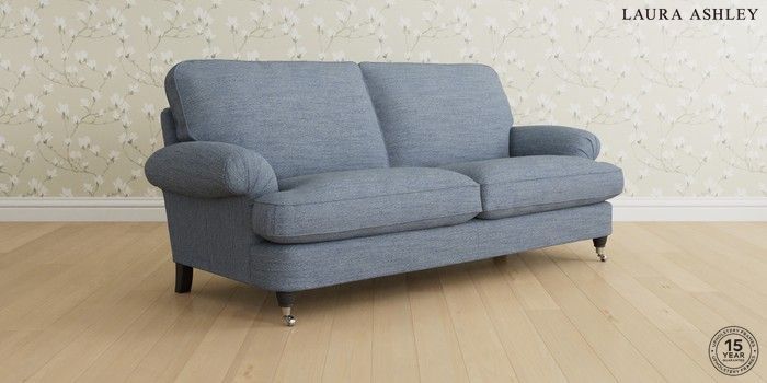 6.12.1 Buy Beaumaris by Laura Ashley 3 Seater Sofa Harley Seaspray Blue Low Chrome Castor - Black from the Next UK online shop Click here to use our accessible website