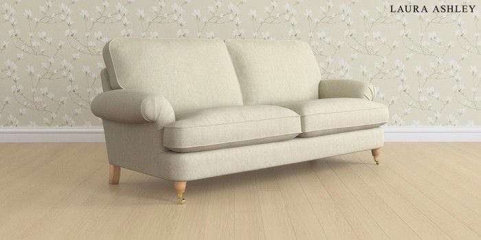 6.12.1 Buy Beaumaris by Laura Ashley 3 Seater Sofa Kinsham Natural Low Brass Castor - Light Oak from the Next UK online shop Click here to use our accessible website