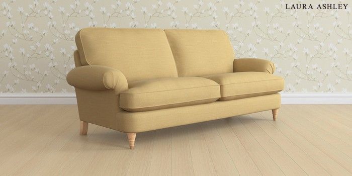 6.12.1 Buy Beaumaris by Laura Ashley 3 Seater Sofa Kinsham Ochre Yellow Low Turned - Light Oak from the Next UK online shop Click here to use our accessible website