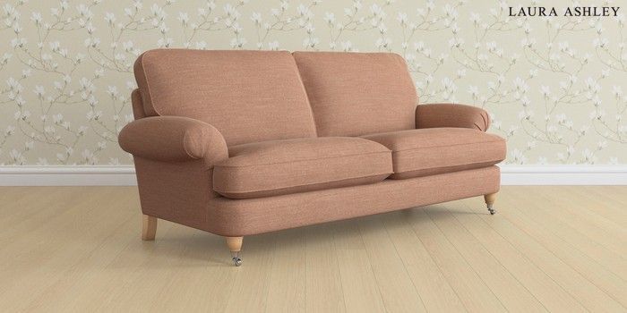 6.12.13 Buy Beaumaris by Laura Ashley 3 Seater Sofa Kinsham Rust Orange Low Chrome Castor - Light Oak from the Next UK online shop Click here to use our accessible website