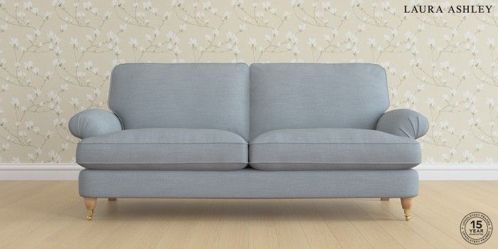6.12.1 Buy Beaumaris by Laura Ashley 3 Seater Sofa Kinsham Seaspray Blue Low Brass Castor - Light Oak from the Next UK online shop Click here to use our accessible website