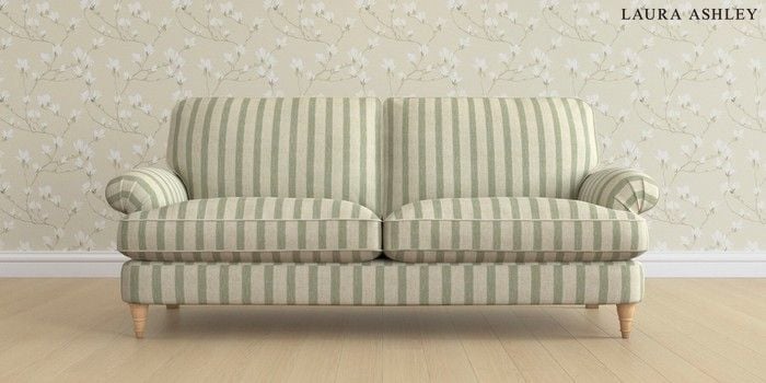 6.12.13 Buy Beaumaris by Laura Ashley 3 Seater Sofa Kinsham Stripe Hedgerow Green Low Turned - Light Oak from the Next UK online shop Click here to use our accessible website