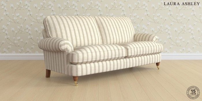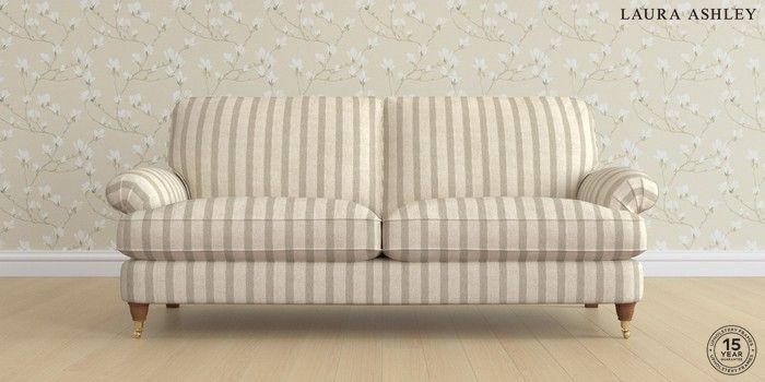 6.12.1 Buy Beaumaris by Laura Ashley 3 Seater Sofa Kinsham Stripe Natural Low Brass Castor - Teak from the Next UK online shop Click here to use our accessible website