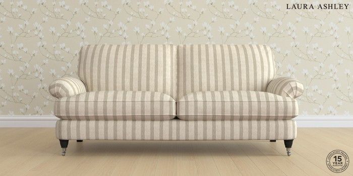 6.12.1 Buy Beaumaris by Laura Ashley 3 Seater Sofa Kinsham Stripe Natural Low Chrome Castor - Black from the Next UK online shop Click here to use our accessible website
