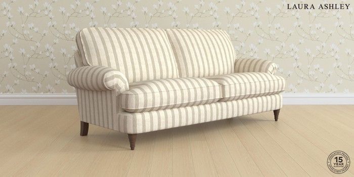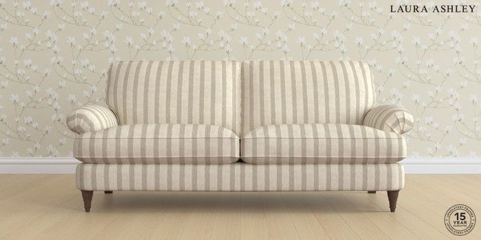 6.12.1 Buy Beaumaris by Laura Ashley 3 Seater Sofa Kinsham Stripe Natural Low Turned - Chestnut from the Next UK online shop Click here to use our accessible website
