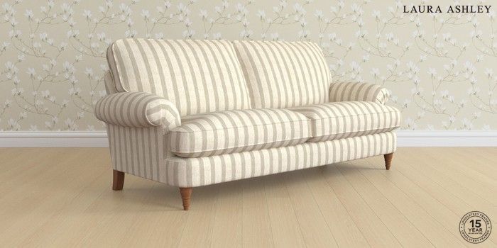 6.12.1 Buy Beaumaris by Laura Ashley 3 Seater Sofa Kinsham Stripe Natural Low Turned - Teak from the Next UK online shop Click here to use our accessible website