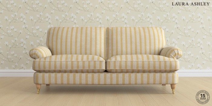 7.0.3 Buy Beaumaris by Laura Ashley 3 Seater Sofa Kinsham Stripe Ochre Yellow Low Brass Castor - Light Oak from the Next UK online shop Click here to use our accessible website