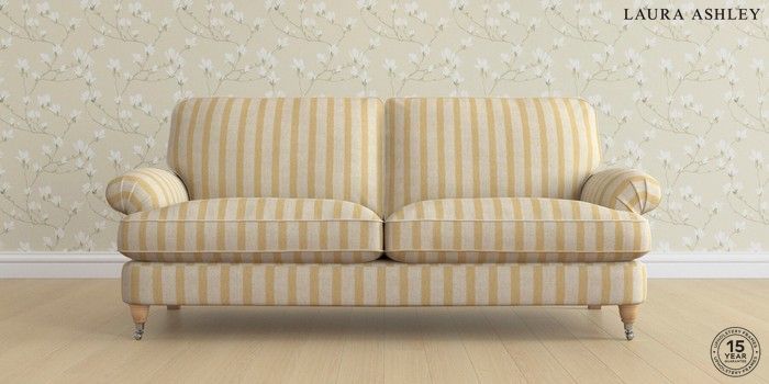 7.0.3 Buy Beaumaris by Laura Ashley 3 Seater Sofa Kinsham Stripe Ochre Yellow Low Chrome Castor - Light Oak from the Next UK online shop Click here to use our accessible website