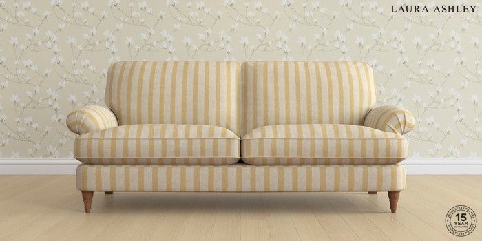 7.0.3 Buy Beaumaris by Laura Ashley 3 Seater Sofa Kinsham Stripe Ochre Yellow Low Turned - Teak from the Next UK online shop Click here to use our accessible website