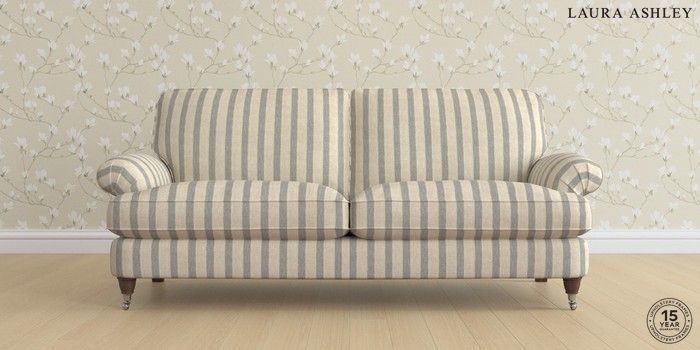 6.12.1 Buy Beaumaris by Laura Ashley 3 Seater Sofa Kinsham Stripe Seaspray Blue Low Chrome Castor - Chestnut from the Next UK online shop Click here to use our accessible website