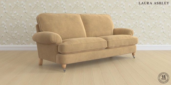 6.12.1 Buy Beaumaris by Laura Ashley 3 Seater Sofa Lundar Chenille Caramel Natural Low Chrome Castor - Light Oak from the Next UK online shop Click here to use our accessible website
