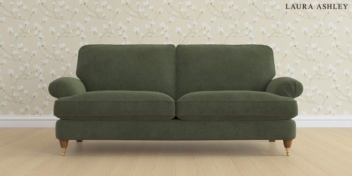 6.12.1 Buy Beaumaris by Laura Ashley 3 Seater Sofa Lundar Chenille Ivy Green Low Brass Castor - Teak from the Next UK online shop Click here to use our accessible website