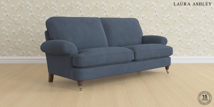 6.12.1 Buy Beaumaris by Laura Ashley 3 Seater Sofa Lundar Chenille Navy Blue Low Chrome Castor - Chestnut from the Next UK online shop Click here to use our accessible website