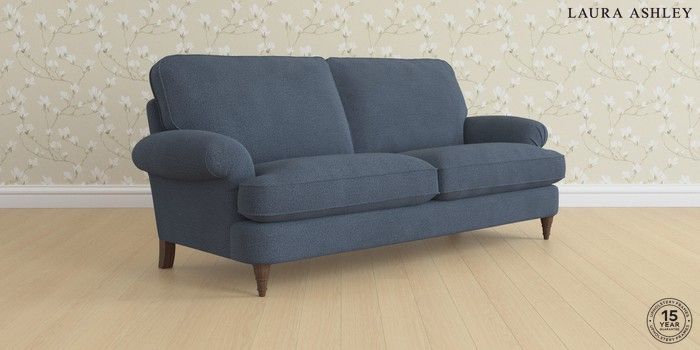 6.12.1 Buy Beaumaris by Laura Ashley 3 Seater Sofa Lundar Chenille Navy Blue Low Turned - Chestnut from the Next UK online shop Click here to use our accessible website