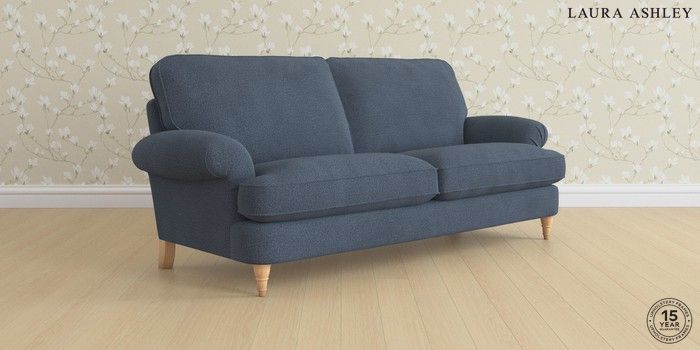6.12.1 Buy Beaumaris by Laura Ashley 3 Seater Sofa Lundar Chenille Navy Blue Low Turned - Light Oak from the Next UK online shop Click here to use our accessible website
