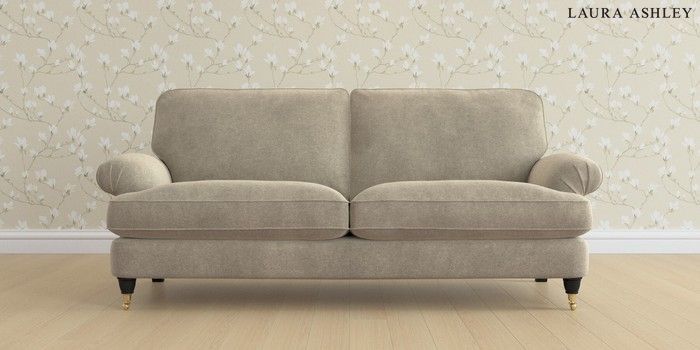 6.12.1 Buy Beaumaris by Laura Ashley 3 Seater Sofa Lundar Chenille Truffle Natural Low Brass Castor - Black from the Next UK online shop Click here to use our accessible website