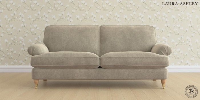 6.12.1 Buy Beaumaris by Laura Ashley 3 Seater Sofa Lundar Chenille Truffle Natural Low Brass Castor - Light Oak from the Next UK online shop Click here to use our accessible website