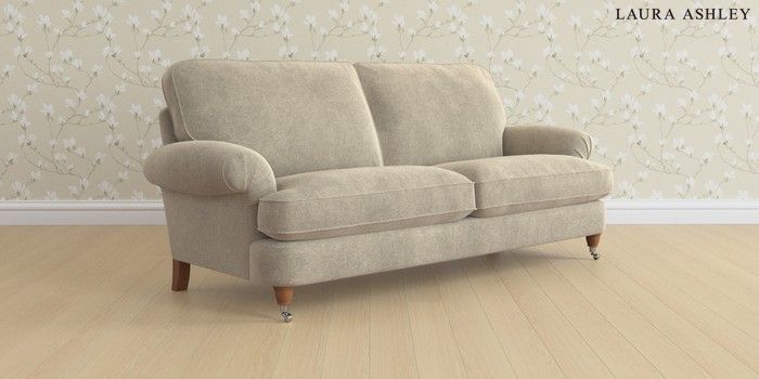 6.12.13 Buy Beaumaris by Laura Ashley 3 Seater Sofa Lundar Chenille Truffle Natural Low Chrome Castor - Teak from the Next UK online shop Click here to use our accessible website