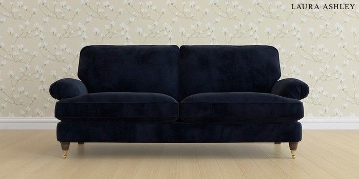 6.12.1 Buy Beaumaris by Laura Ashley 3 Seater Sofa Orla Midnight Navy Low Brass Castor - Chestnut from the Next UK online shop Click here to use our accessible website