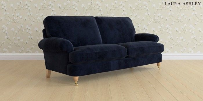 6.12.1 Buy Beaumaris by Laura Ashley 3 Seater Sofa Orla Midnight Navy Low Brass Castor - Light Oak from the Next UK online shop Click here to use our accessible website