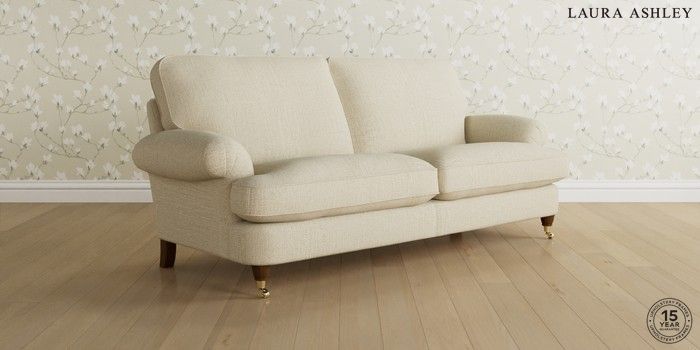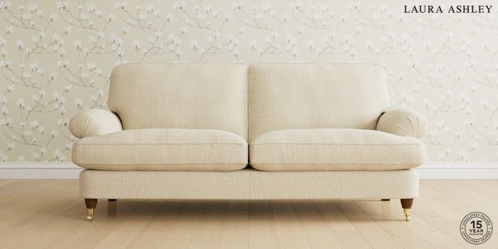 6.12.1 Buy Beaumaris by Laura Ashley 3 Seater Sofa Orla Oyster Natural Low Brass Castor - Teak from the Next UK online shop Click here to use our accessible website