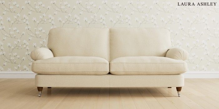 6.12.1 Buy Beaumaris by Laura Ashley 3 Seater Sofa Orla Oyster Natural Low Chrome Castor - Teak from the Next UK online shop Click here to use our accessible website