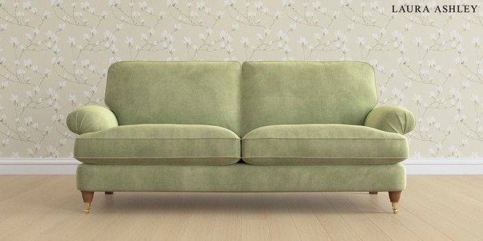 6.12.1 Buy Beaumaris by Laura Ashley 3 Seater Sofa Orla Pale Hedgerow Green Low Brass Castor - Teak from the Next UK online shop Click here to use our accessible website