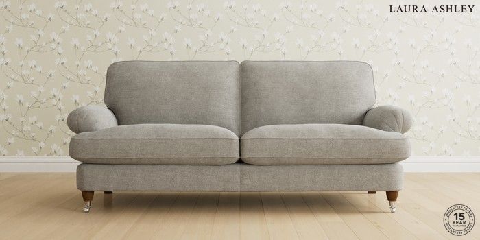 6.12.1 Buy Beaumaris by Laura Ashley 3 Seater Sofa Orla Pale Steel Grey Low Chrome Castor - Teak from the Next UK online shop Click here to use our accessible website